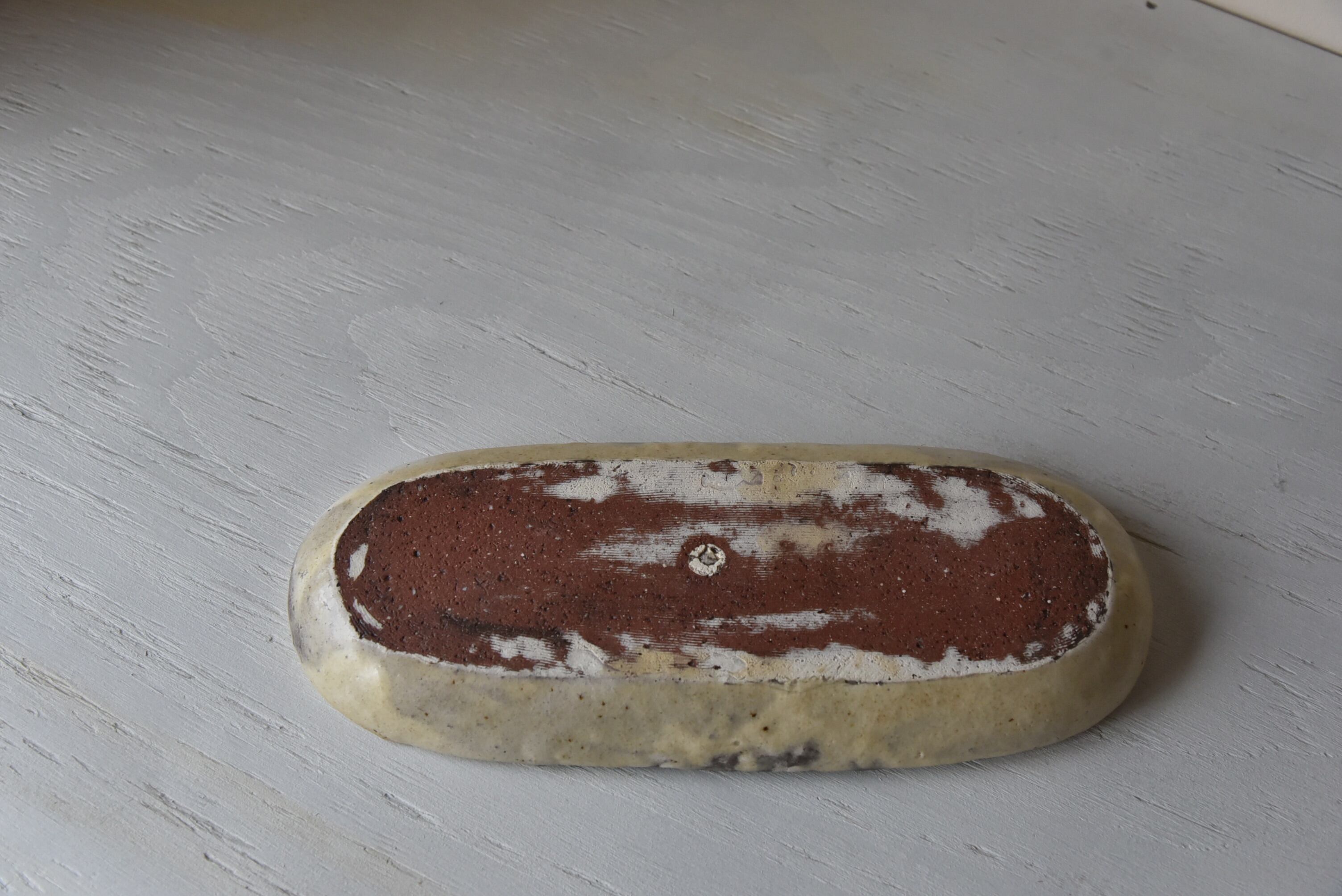 赤い粘土に白化粧土をかけ