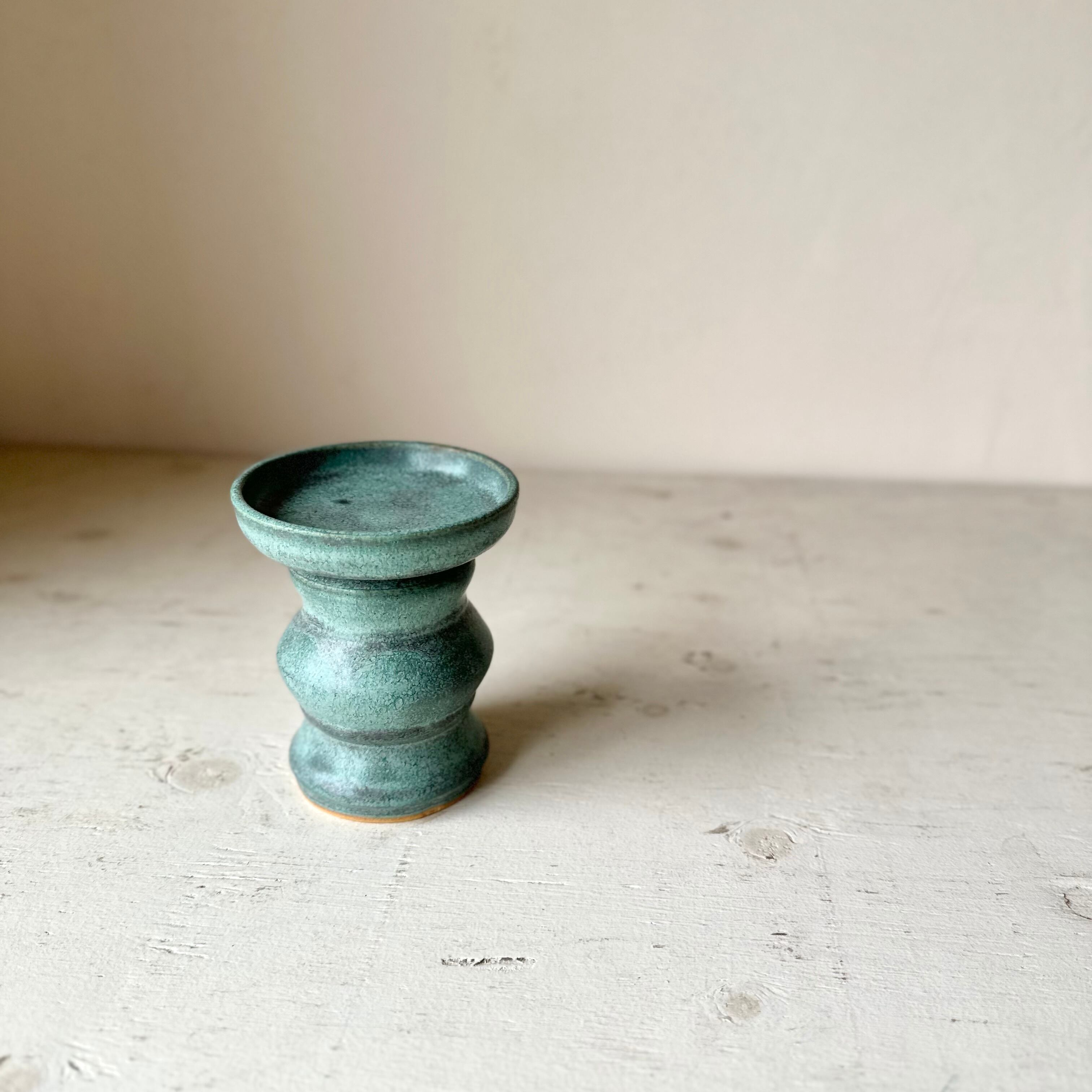 アンティークブルー釉 キャンドルスタンド